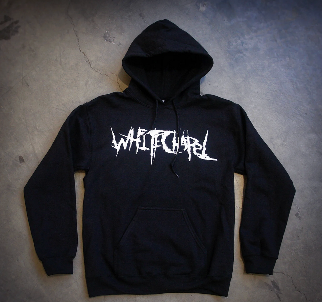 Whitechapel "Classic Logo" black pullover hoodie. Printed on standard apparel. Officially licensed Whitechapel merchandise.