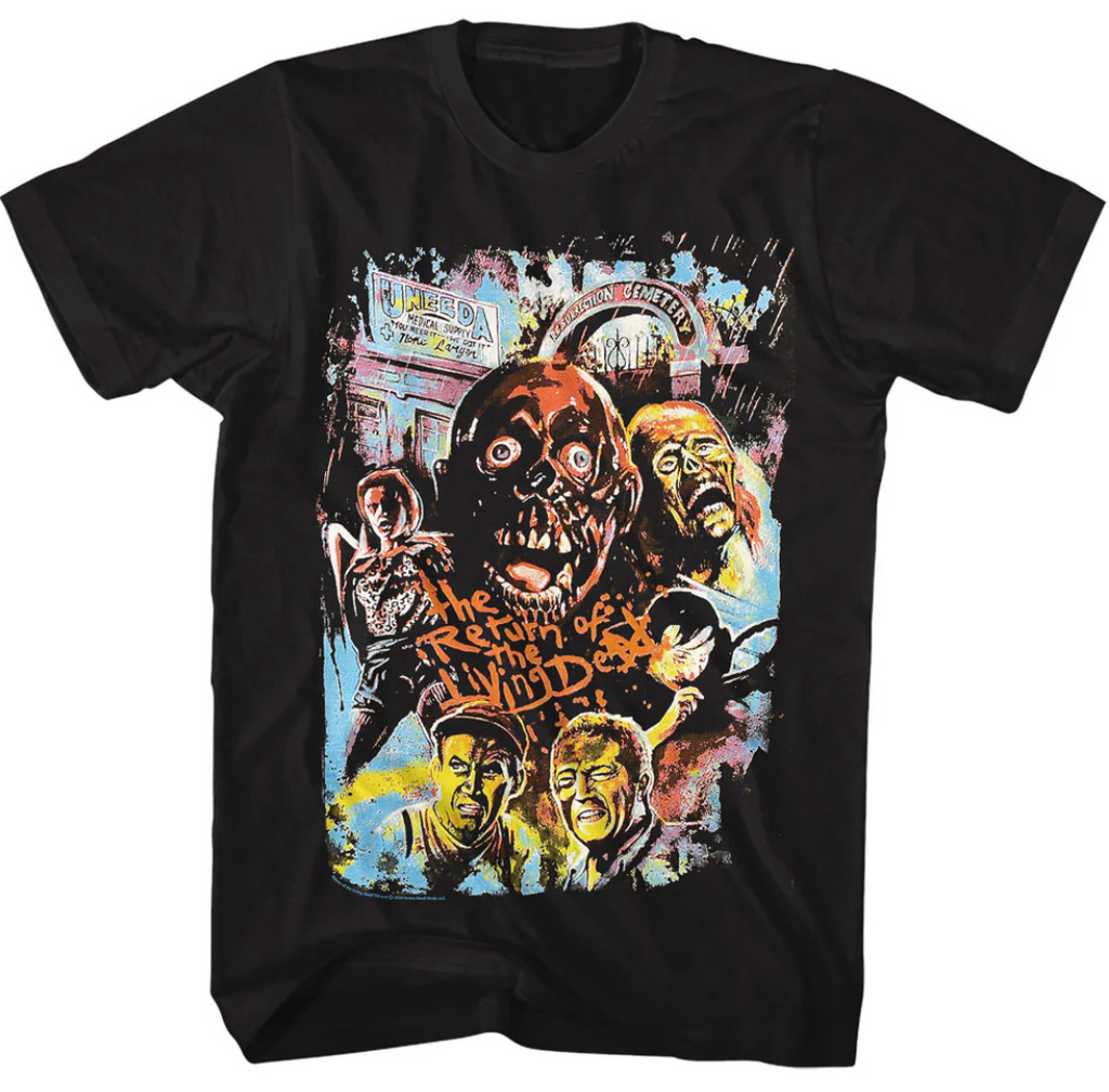 The Return Of The Living Dead (1985) "Joe K Art" black t-shirt. Officially licensed Return of the Living Dead merchandise. Printed on standard apparel.
