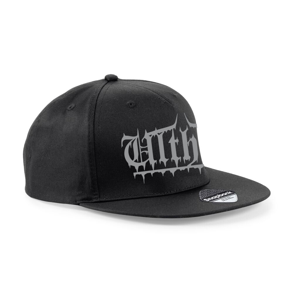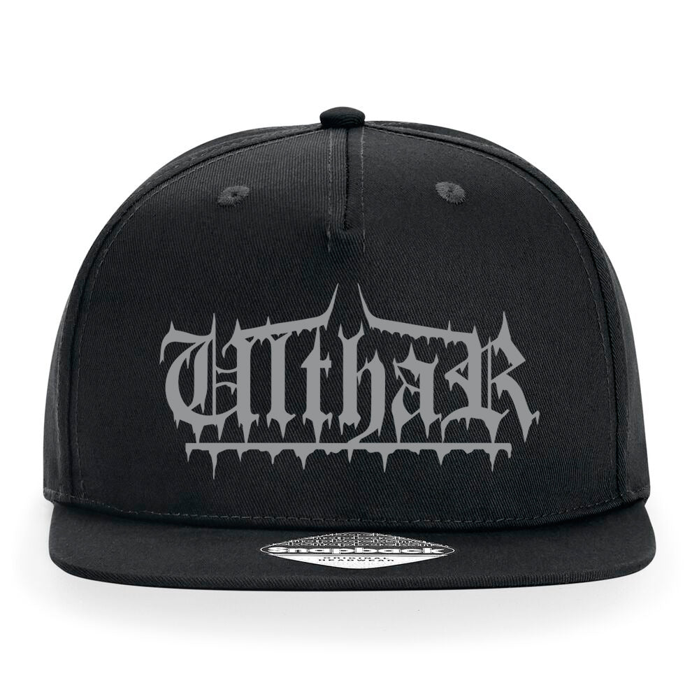 - Embroidered logo on black snapback hat